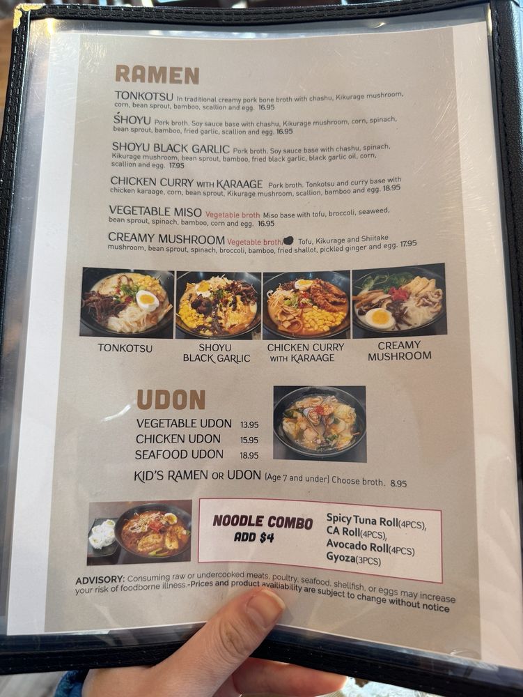 Ramen enthusiasts will rejoice with choices like the Shoyu Black Garlic Ramen and a critically acclaimed vegetarian option, boasting rich broths and generous toppings. The generous portions ensure you'll leave satisfied, while friendly staff enhance your dining experience.